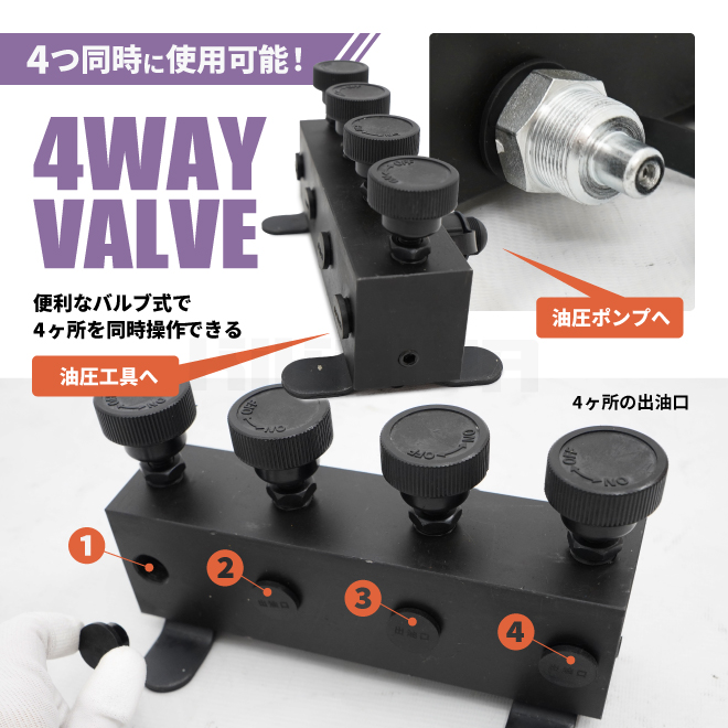 - 油圧バルブ 4WAY 4方弁 同時 個別 操作 油圧 バルブ オイルバルブ Rc3/8 KIKAIYA