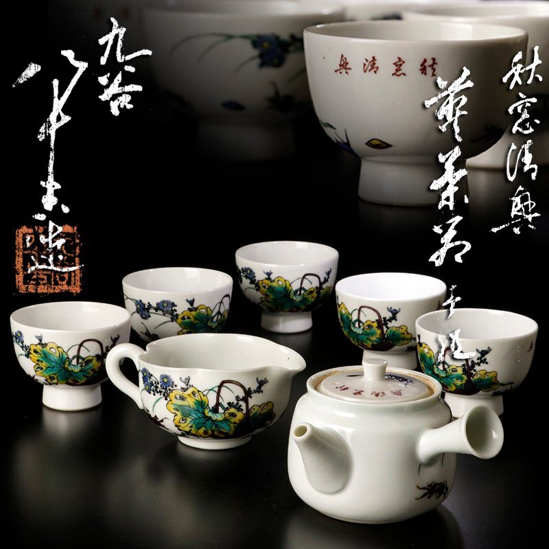 > ★【古美味】初代徳田八十吉 煎茶器 急須 湯冷まし 煎茶碗 五客 煎茶道具 茶道具 保証品 5BvE