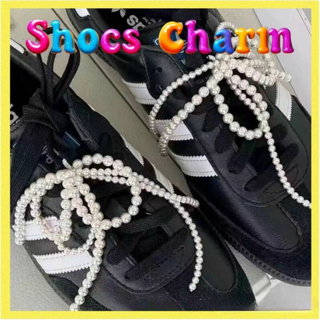 - シューズチャーム 2個セット ホワイト パール リボン 靴紐 スニーカー