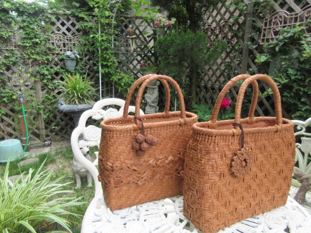 - ■日本製【職人の手作り】■山葡萄かごバッグ /手編み山葡萄籠/バスケット籐かご ■内ポケット3&カバー付き■即決はバッグチャーム付き!