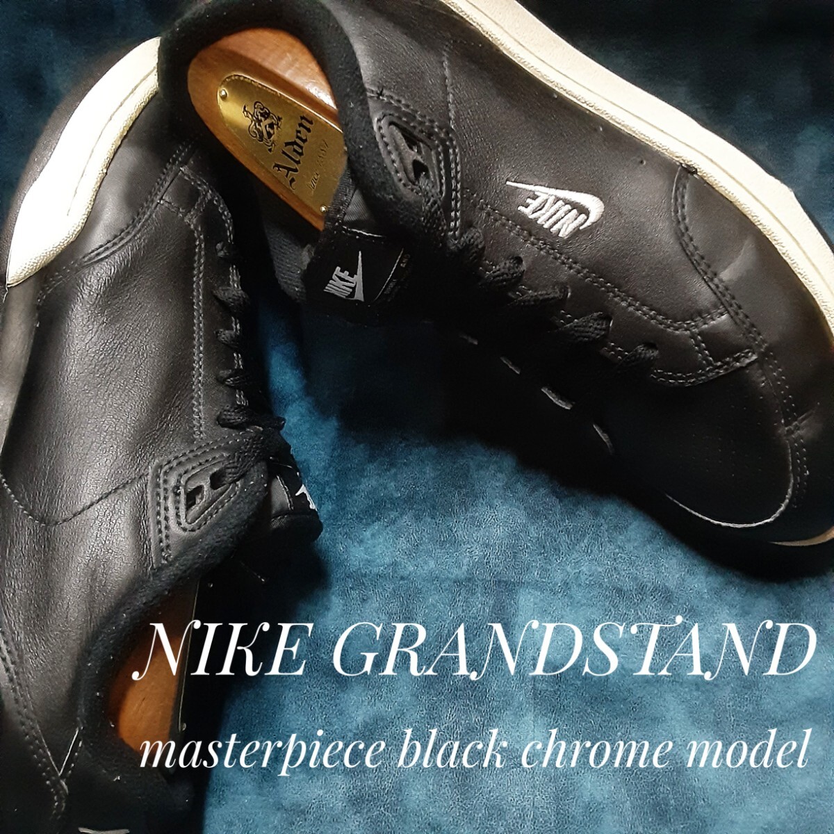 > 最値!定9680円!名作17製!ブラッククローム!90's復刻!スモールスウォッシュ!ナイキ グランドスタンド高級カレザー スニーカー!黒白 27.5cm