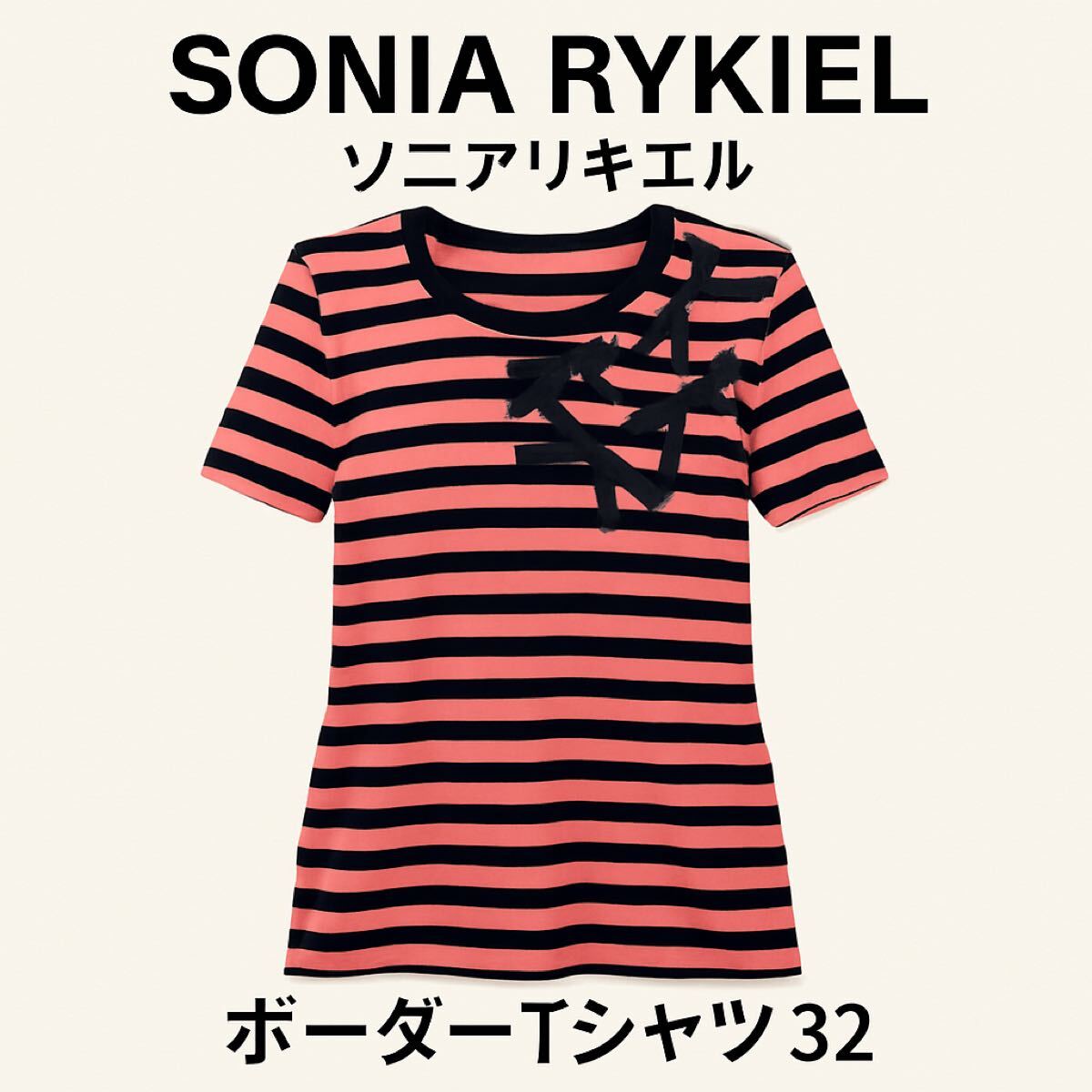 - ソニアリキエル SONIA RYKIEL ボーダー 半袖Tシャツ XS〜S相当 ピンク×黒 リボン柄