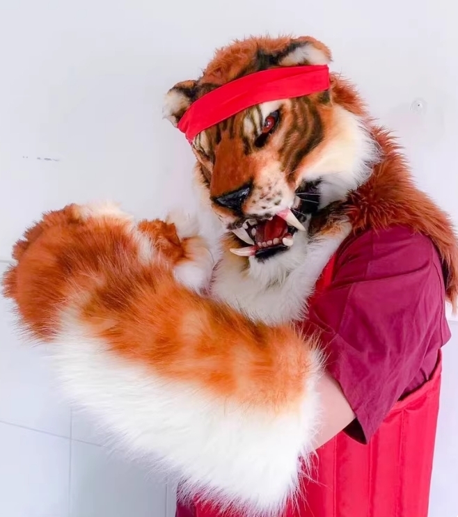 > ★ファースーツ 着ぐるみセット NO.171 虎 リアルスタイル ケモノ ファースーツ 全頭ヘッド ぬいぐるみ コスプレ コスチューム 一点物