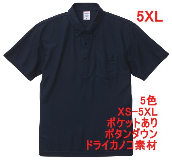 - ポロシャツ 半袖 5XL ネイビー ボタンダウン 胸ポケット付き ドライ 鹿の子素材 無地 ドライ素材 カノコ A2009 XXXXXL 6L 紺 紺色 202301