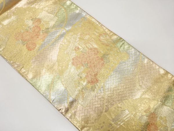 > ys7434780; 宗sou 佐賀錦 檜扇に御所車・花模様織り出し袋帯【着】