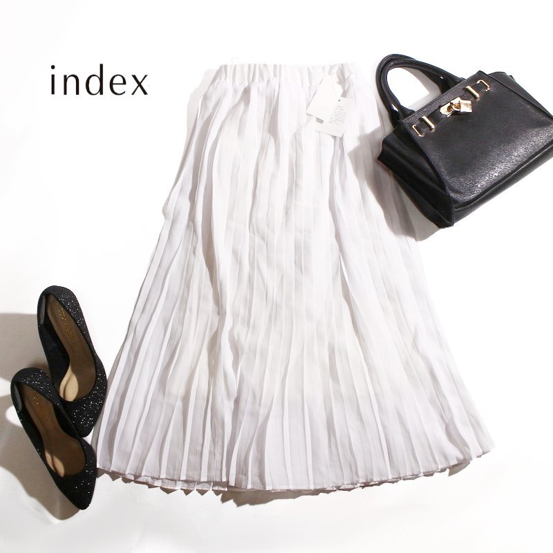 - 未使用 新品 index インデックス 株) ワールド 春 夏 定番 清楚 オーガンジー シフォン ミディ プリーツスカート M ホワイト 白 シフォン