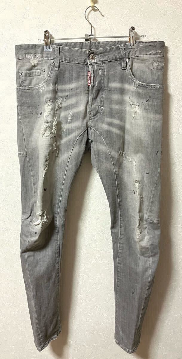 - 【美品】ディースクエアード dsquared2 グレーデニム(サイズ46)/デニムパンツ/ジーンズ/メンズ/ダメージ加工/ペイント