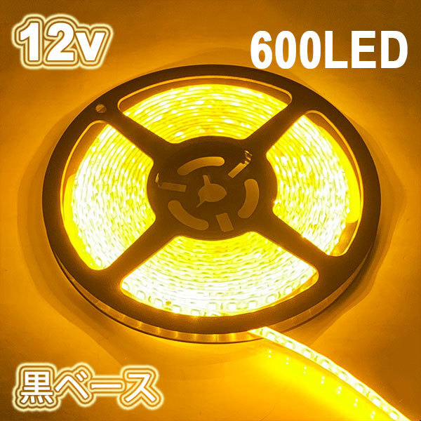 - LEDテープライト 600連 12v 防水 5m イエロー正面発光 黒ベース 送料無料