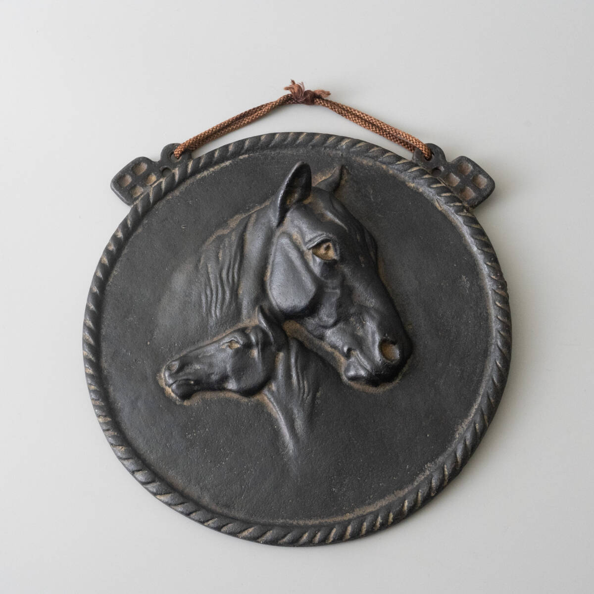 - 南部鉄器 岩鋳 馬 親子 レリーフ 置物 オブジェ 飾り 古道具 動物