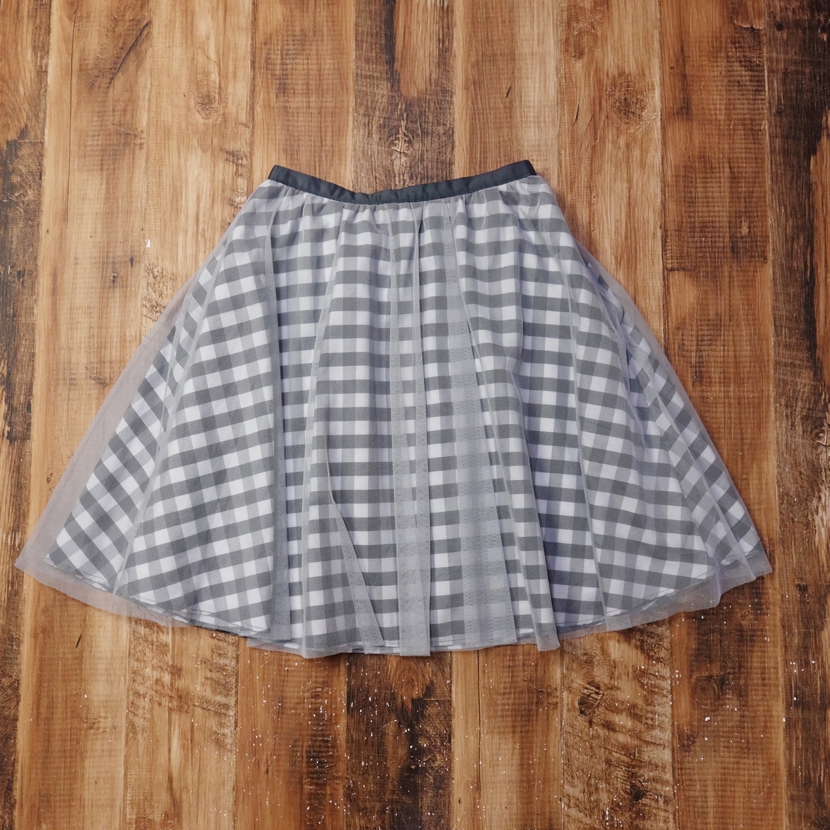 - 美品 アプワイザーリッシェ Apuweiser-riche ギンガムチェック チュールスカート レディース フレア ひざ丈 フェミニン S グレー LK28