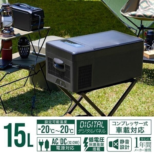 - 車載 冷蔵庫 冷凍庫 15L ブラック DC 12V 24V AC 2電源 ポータブル冷蔵庫 自動車 トラック 冷蔵 冷凍 保冷 小型 車 アウトドア キャンプ