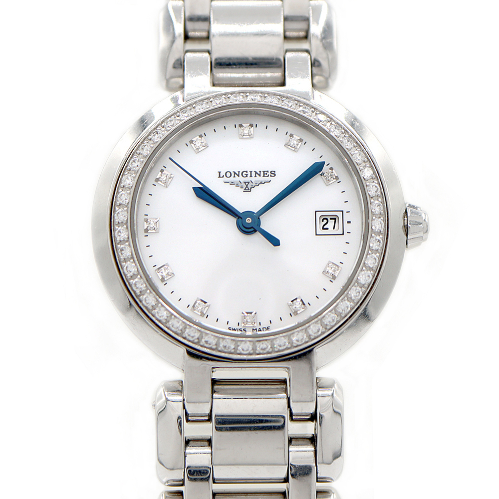 - 電池交換済 LONGINES ロンジン プリマルナ ダイヤベゼル L8.110.0 ダイヤモンド 11PD ホワイトシェル SS レディース クォーツ