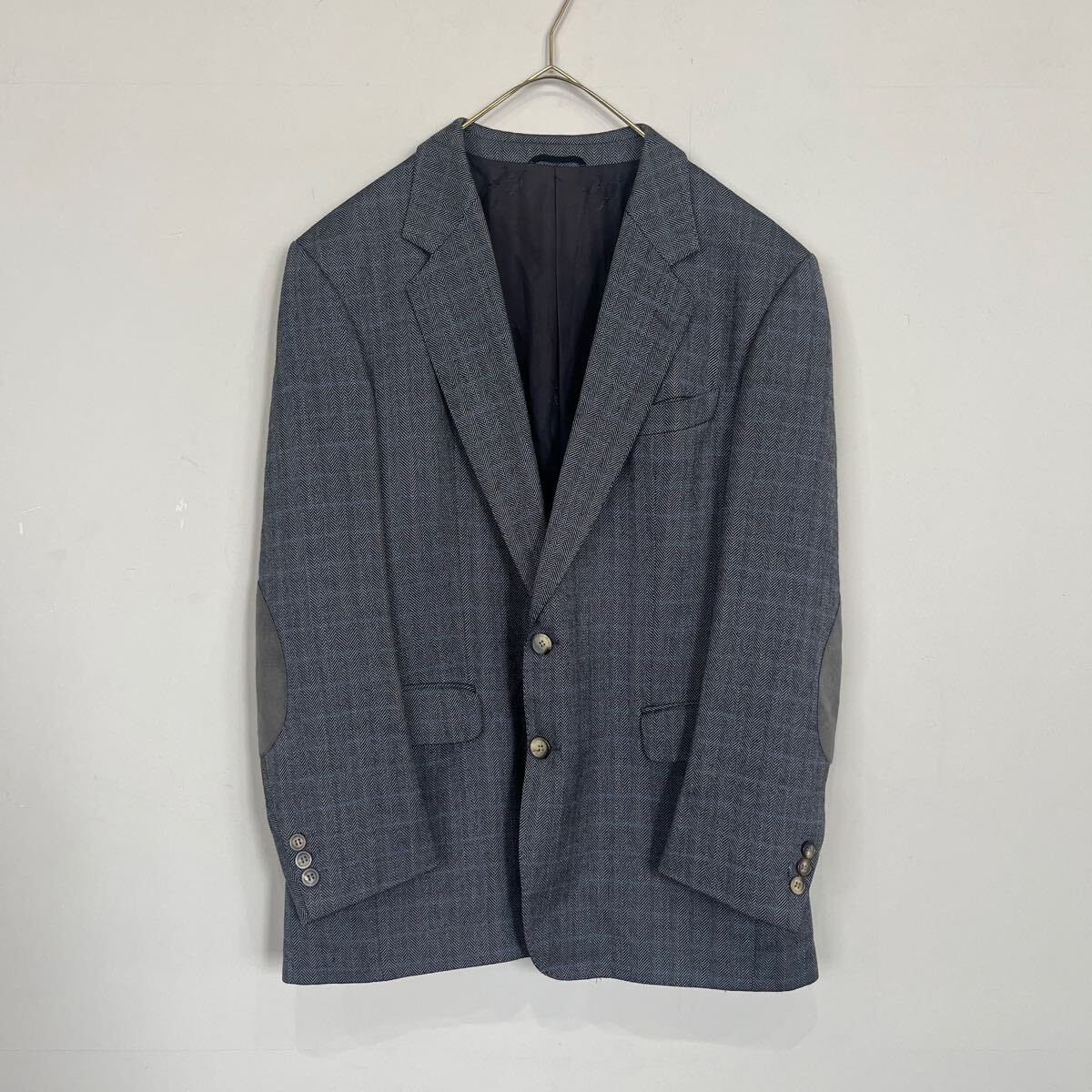 - 80s Burberrys' バーバリー ツイードジャケット テーラードジャケット チェック柄 グレー 寒色系 シングル2ボタン エルボーパッチ vintage