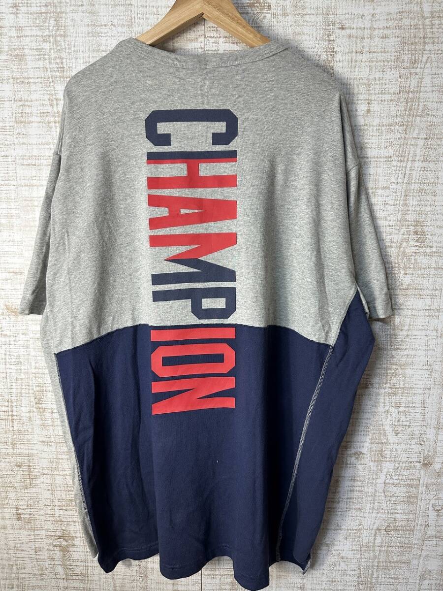 > ☆超ビッグサイズ US古着 単色タグ Champion チャンピオン スウェットシャツ Tシャツ 切り替えデザイン グレーネイビー紺【3XL】◆5016◆