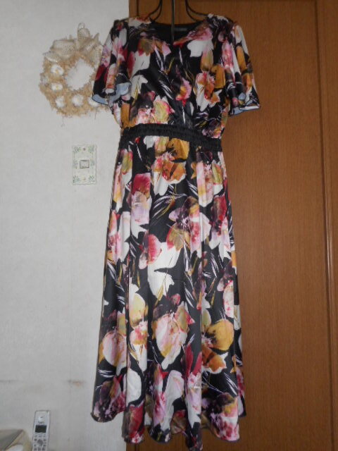 - カシュクール大花柄フレアースリーブワンピースL★新品同様ゆったりデザイン