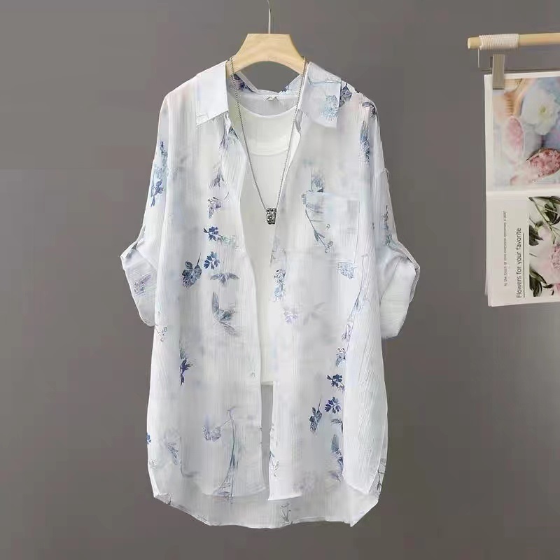 - 新入荷*ロング丈カーディガン シフォンカーディガン 紫外線対策 UV対策 日焼け防止 レディース トップス 薄手 上品 春 夏*ブルー