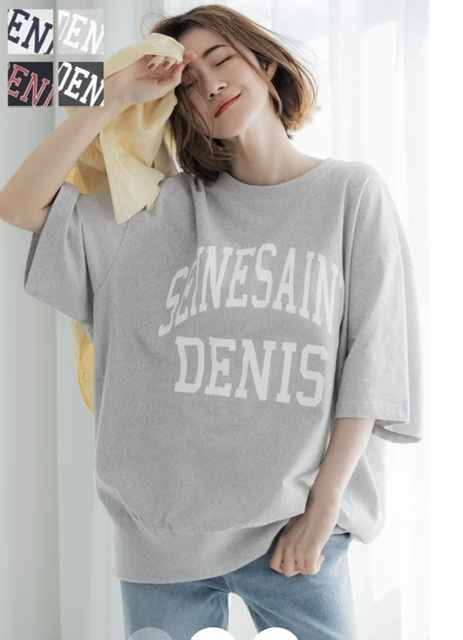 > 未使用★ タグ付★ ロゴT スウェット見えTシャツ 英字ロゴ カットソー M ビックシルエット 男女兼用 ユニセックス ライトグレー 自宅保管