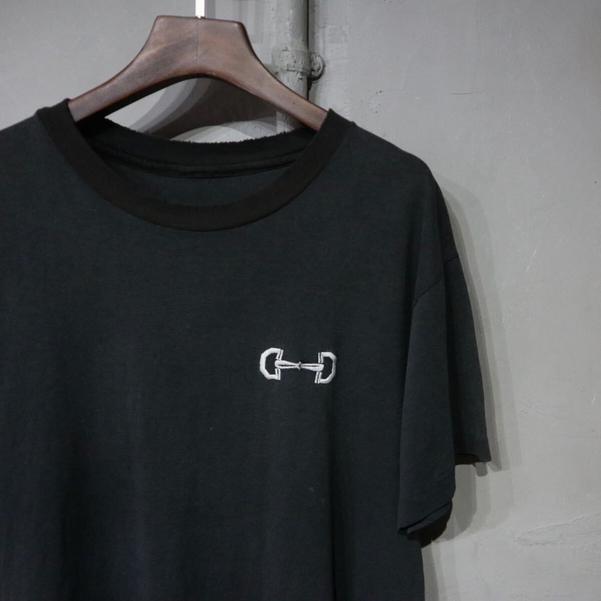 > 【即決】90s 刺繍 半袖 Tシャツ リブ ツートン ブラック 黒 シングルステッチ BORO ボロ 古着