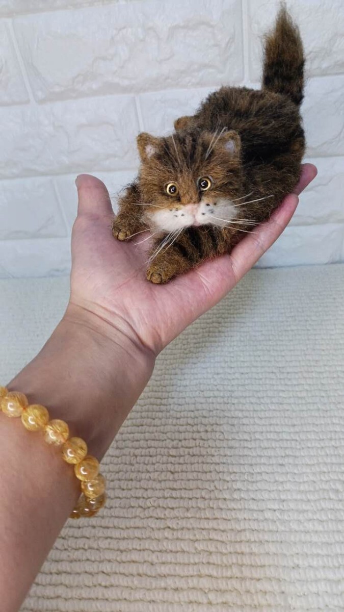 - ++nannan++ 羊毛フェルト 寝そべりキジトラ猫 手乗りサイズ ハンドメイド インテリア