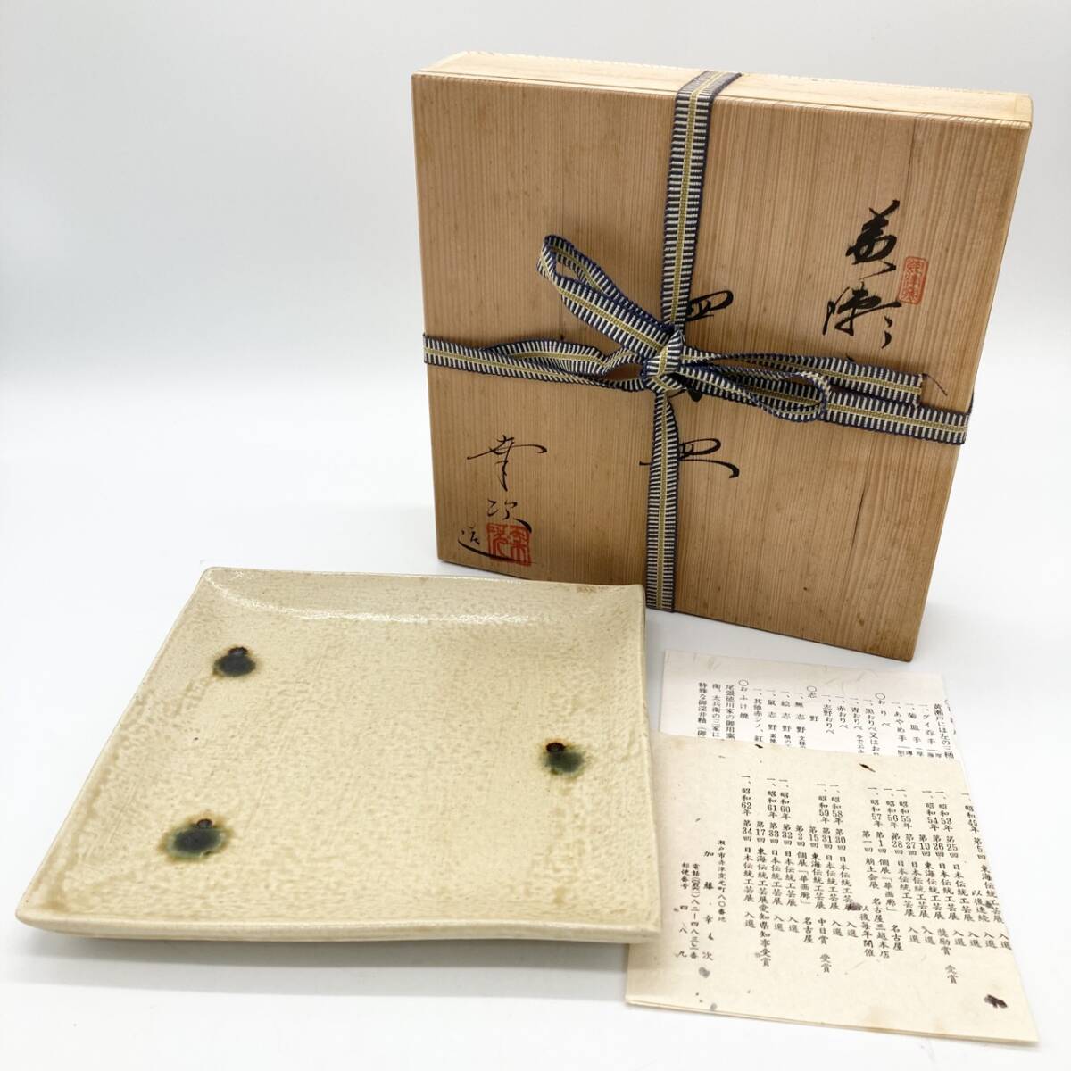 - ic69318 加藤唐三郎 黄瀬戸 鉢 共箱 栞