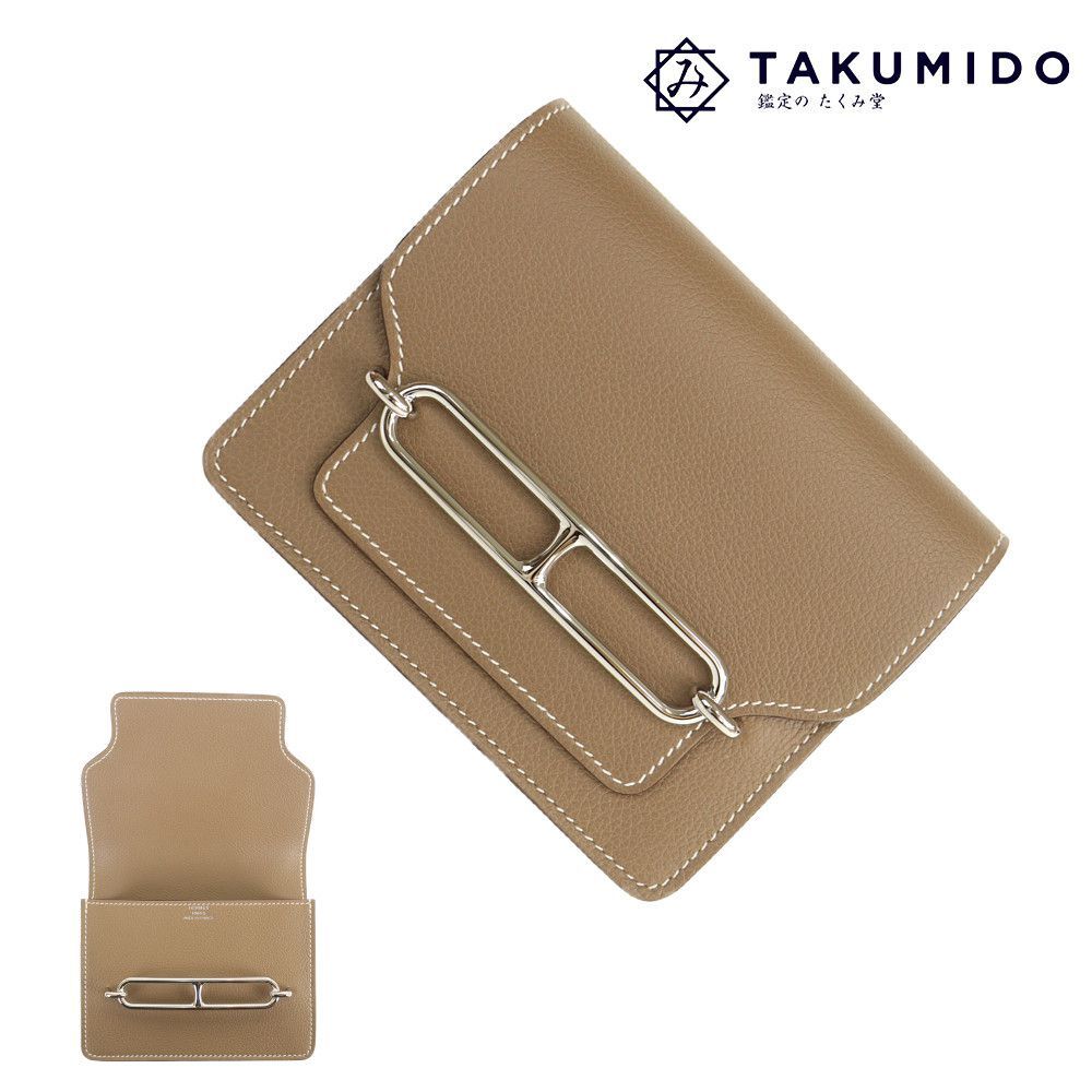 > 代引不可 エルメス HERMES 二つ折り財布 ロウリス ルリ スリム B刻印 2023年製造 エトゥープ シルバー金具 トゴ 中古SA 281595