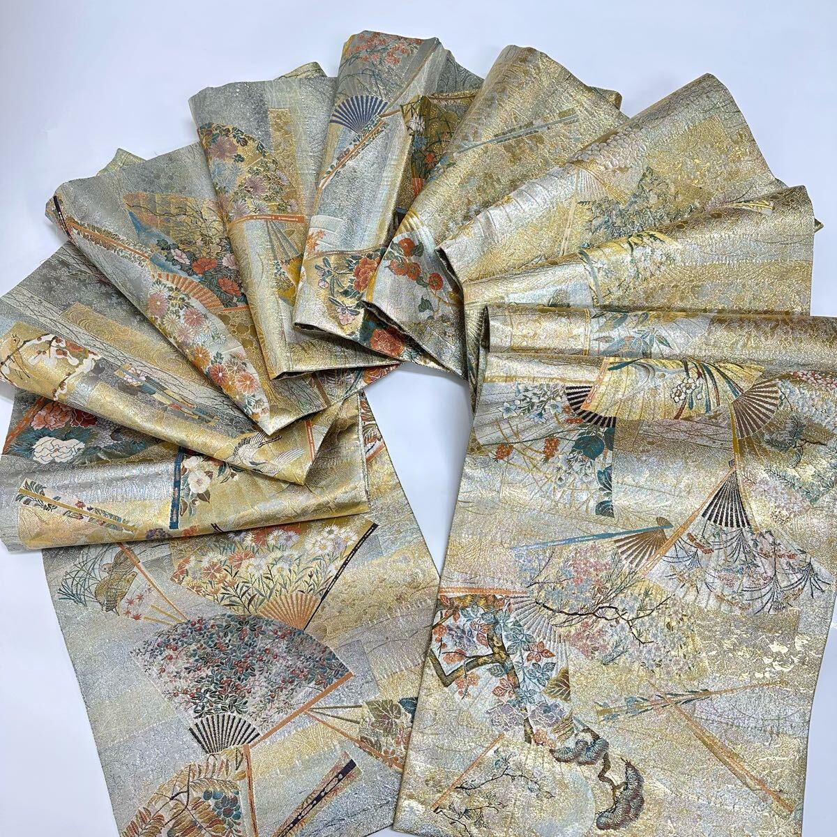 - 【七福】c630 逸品 高級品 正絹 袋帯 全通 両面 琳派三十六華扇 24金プラチナ二重箔 金糸 銀糸 豪華
