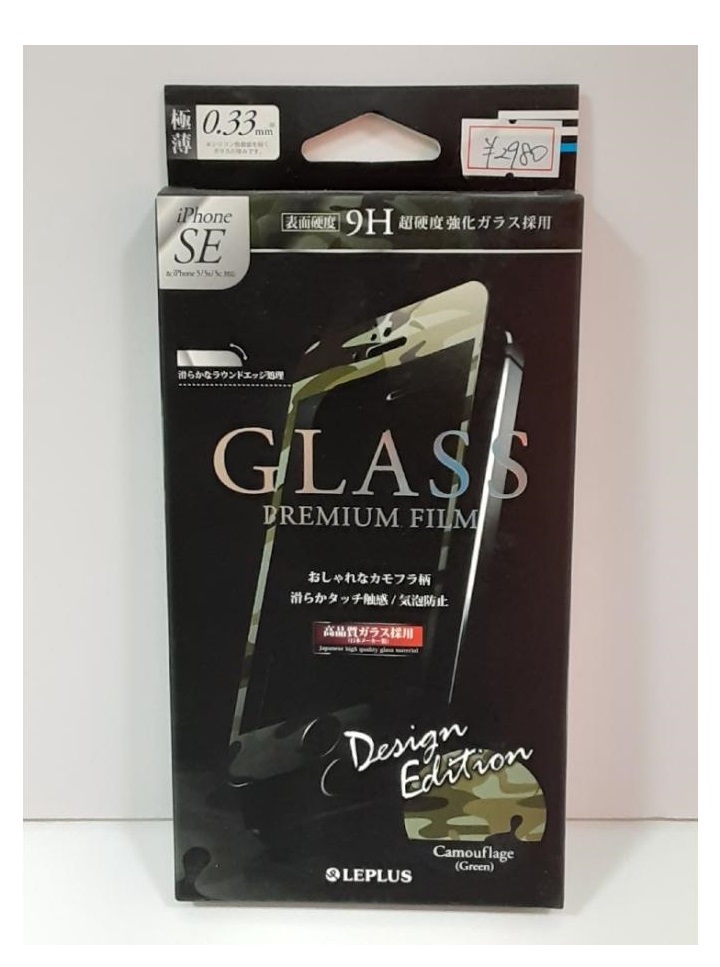- C3【新長031208-101】新品 iPhone SE/5/5S/5C 9H超硬度強化ガラスフィルム カモフラ柄 指紋防止 気泡防止 日本メーカー製 グリーン