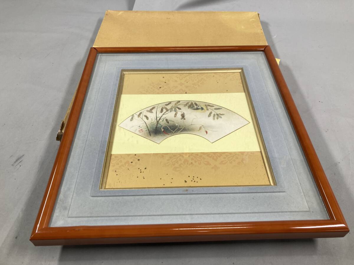 - 絵画 扇形 骨董品 1点 額入り 絵画 せんす 絵 コレクション マニア インテリア
