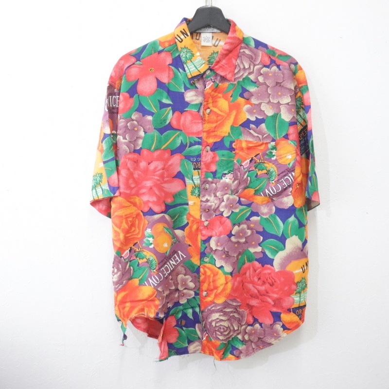 - E669 90sビンテージ UNIONBAY 半袖アロハシャツ■1990年代製 表記Sサイズ マルチカラー レーヨン アメカジ ストリート 古着 激安 古着卸
