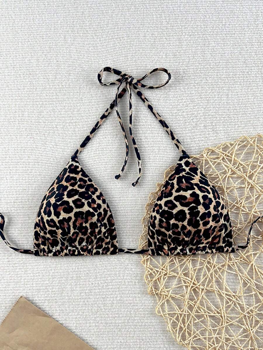 - レディース 水着 トップス 2枚 レオパード柄 リボンデザイン セクシービキニトップ ランダム柄 レディース 夏 ビーチ用