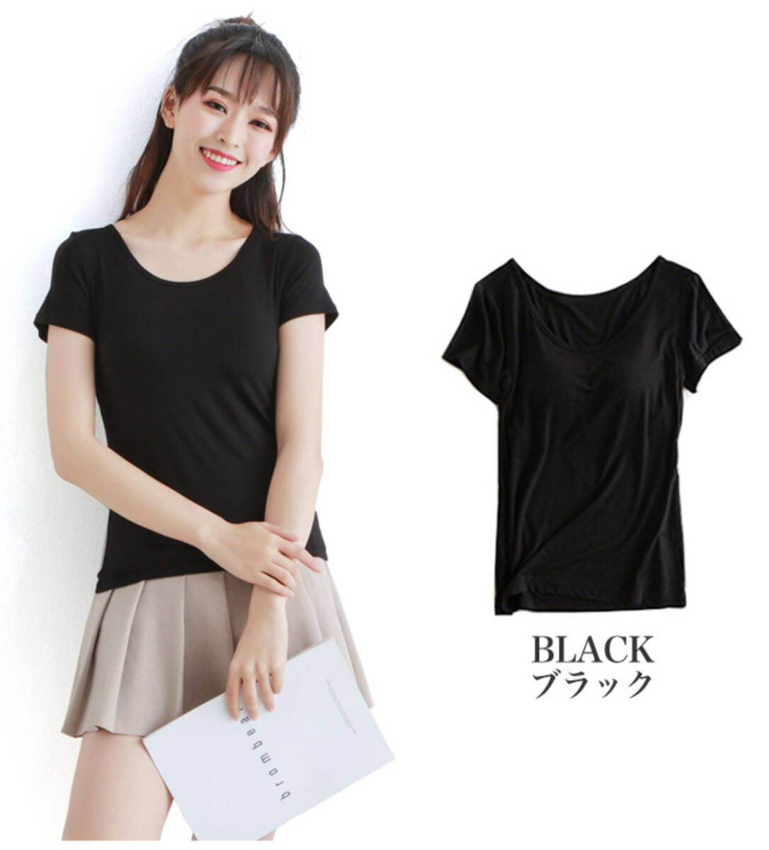 - カップ付き 半袖 ブラトップ 2枚セット ブラック