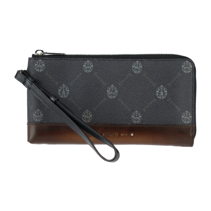 - 美品 Berluti ベルルッティ ニノ ミディアム 長財布 PVC レザー グレー系 ブラウン系 リストレット L【本物保証】