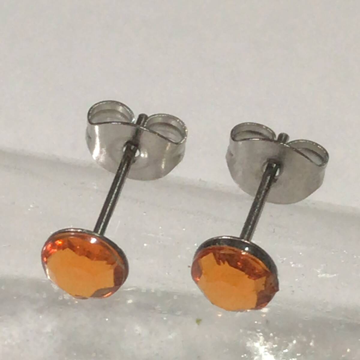 - 2個1セット ラインストーン スタッドピアス オレンジ 両耳用 ステンレス アクリル製 シンプル つけっぱなしOK 安い