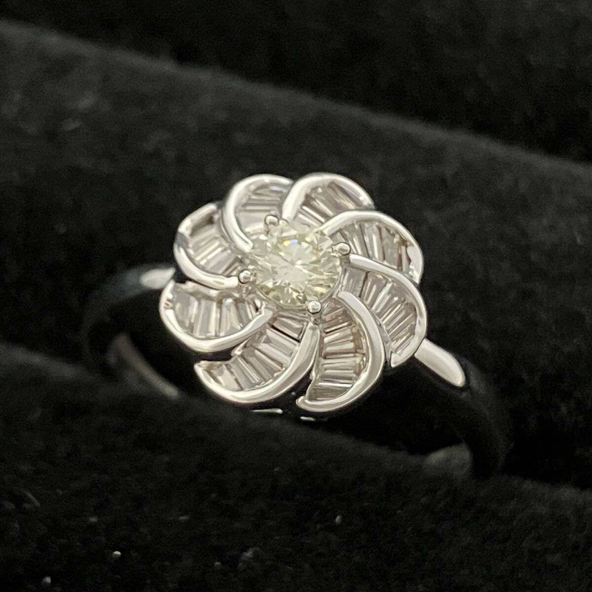 > 鑑別カード付 新品仕上済み 天然ダイヤモンド 0.37ct デザイン リング K18WG 9号 2.6g 金 ホワイト ゴールド 指輪