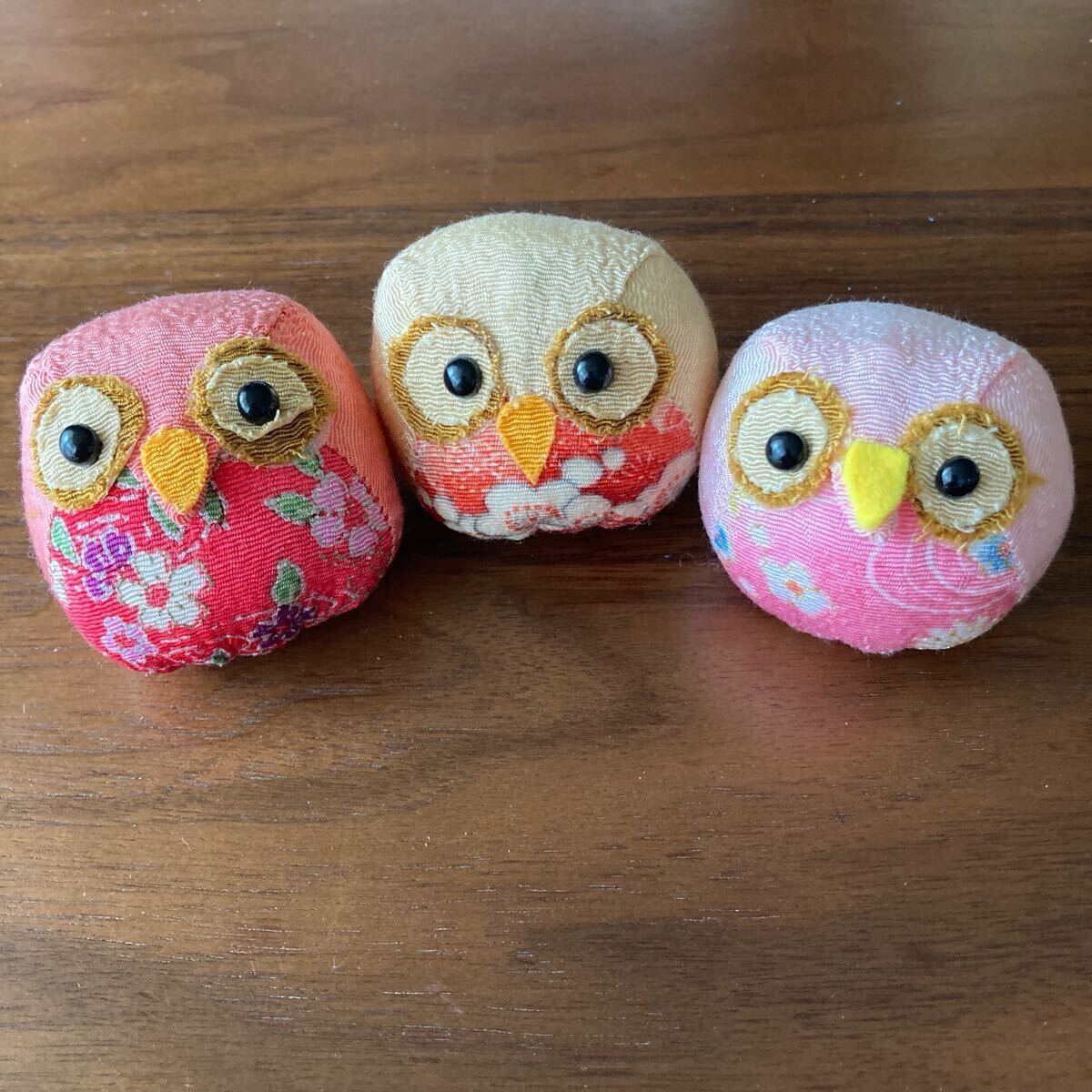 - お手玉 3点 フクロウ ちりめん つまみ細工 ふくろう 和雑貨