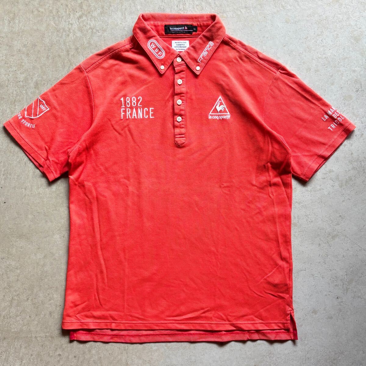 - 【le coq sportif】ルコックスポルティフ 半袖 ポロシャツ メンズ LL オレンジ ロゴ 刺繍 鹿の子 コットン GOLF ゴルフ ウェア 正規品