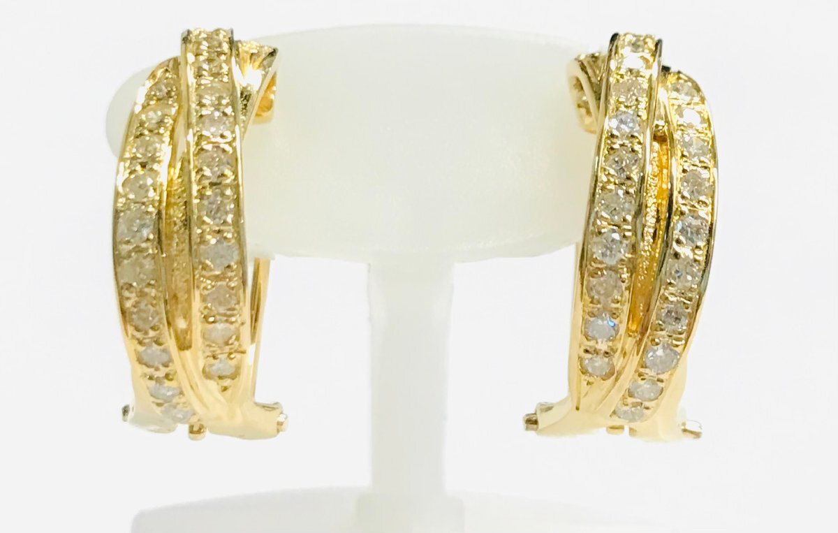 - K18 ゴールド クロスライン ピアス/イヤリング 2way ダイヤモンド D0.35/0.35 qoj.YSX01