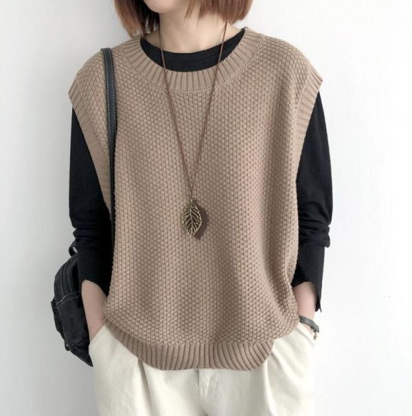 - 新品 * 上質 ベスト おしゃれ 不規則 無地 トップス ニットセーター 袖なし ニット チョッキ * カーキ