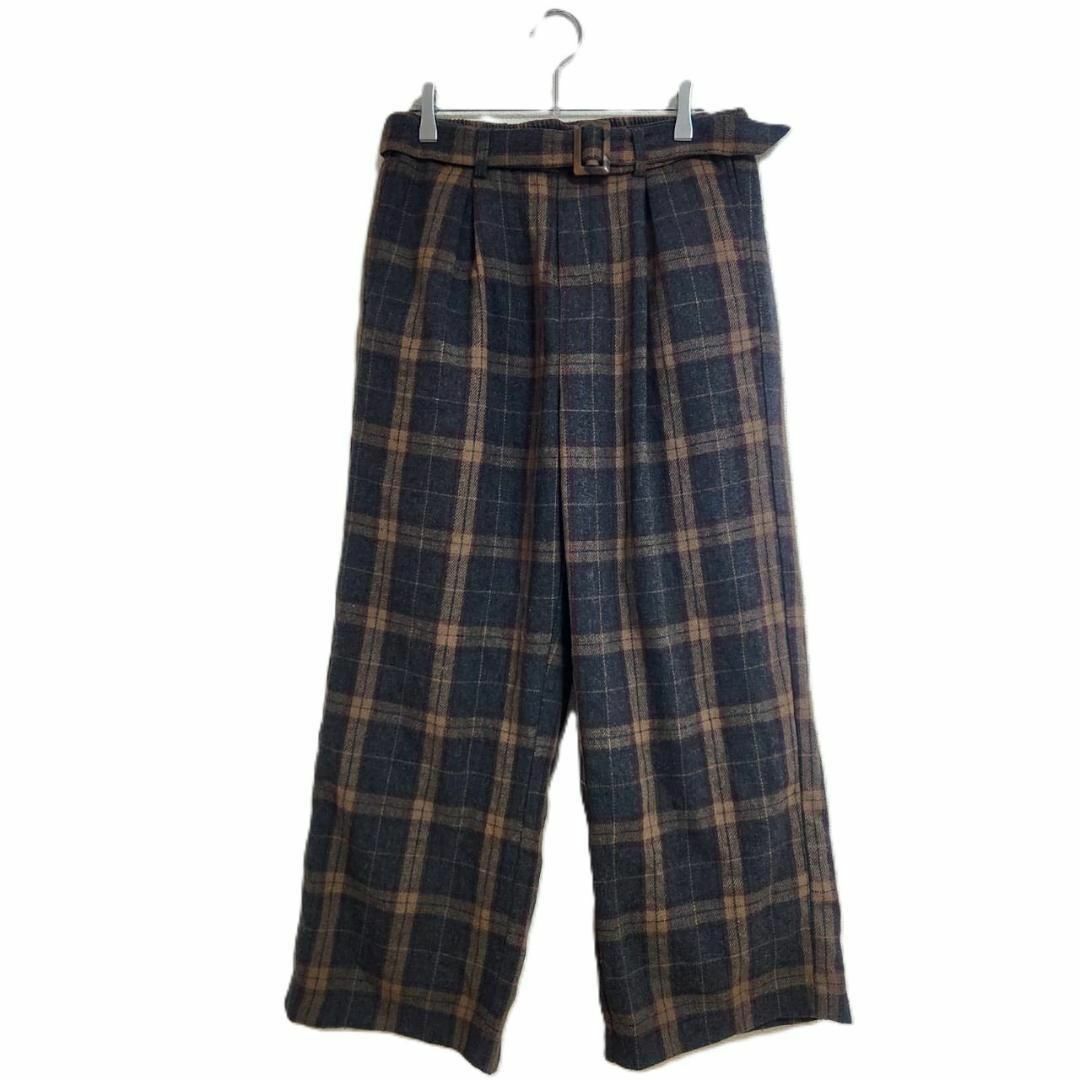 - ワイドパンツ L チェック柄 ウエストゴム ベルト付き おしゃれ 秋冬 きれいめ
