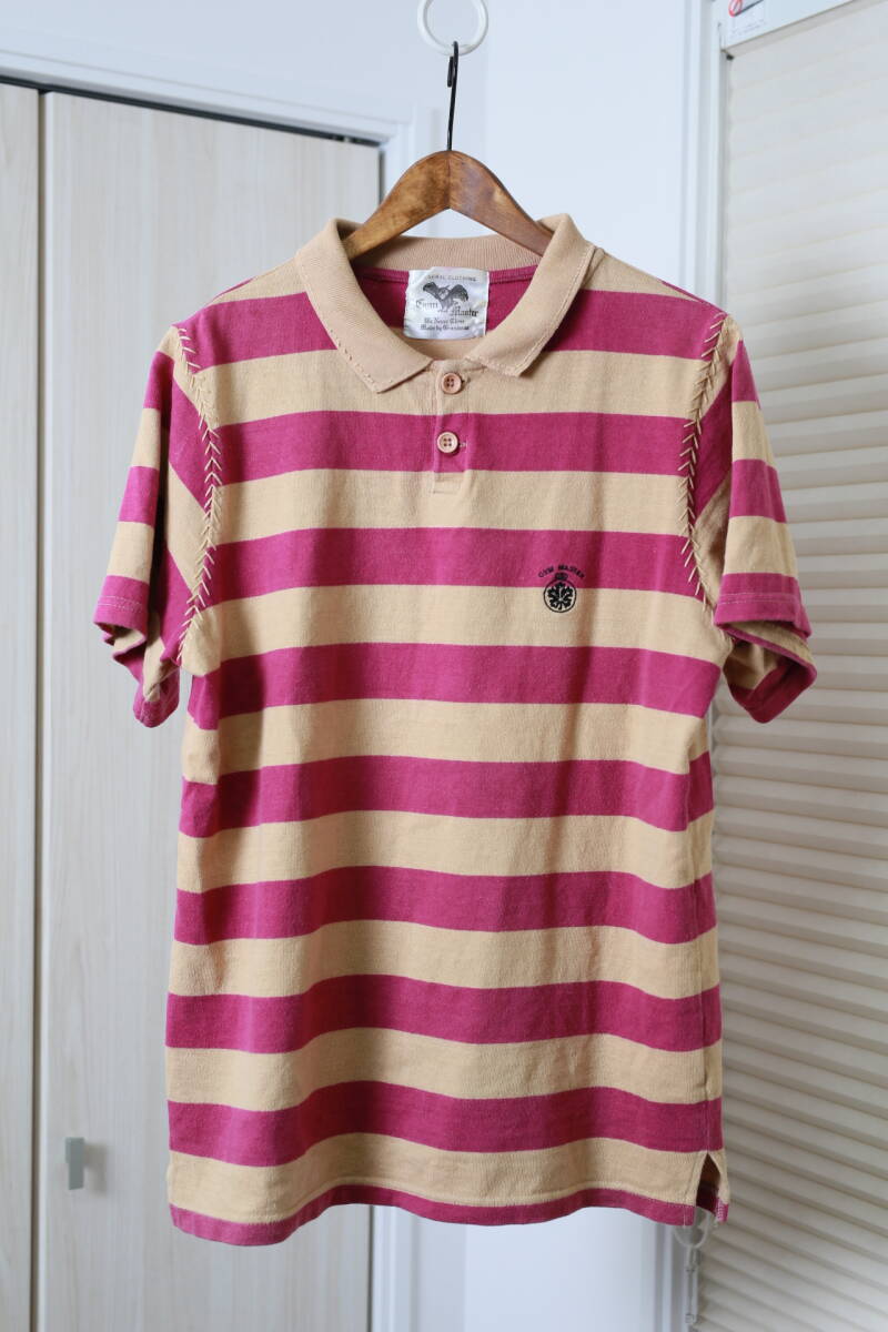 Gym Master ジムマスター ステッチ加工 ワンポイント刺繍入りボーダー柄半袖ポロシャツ