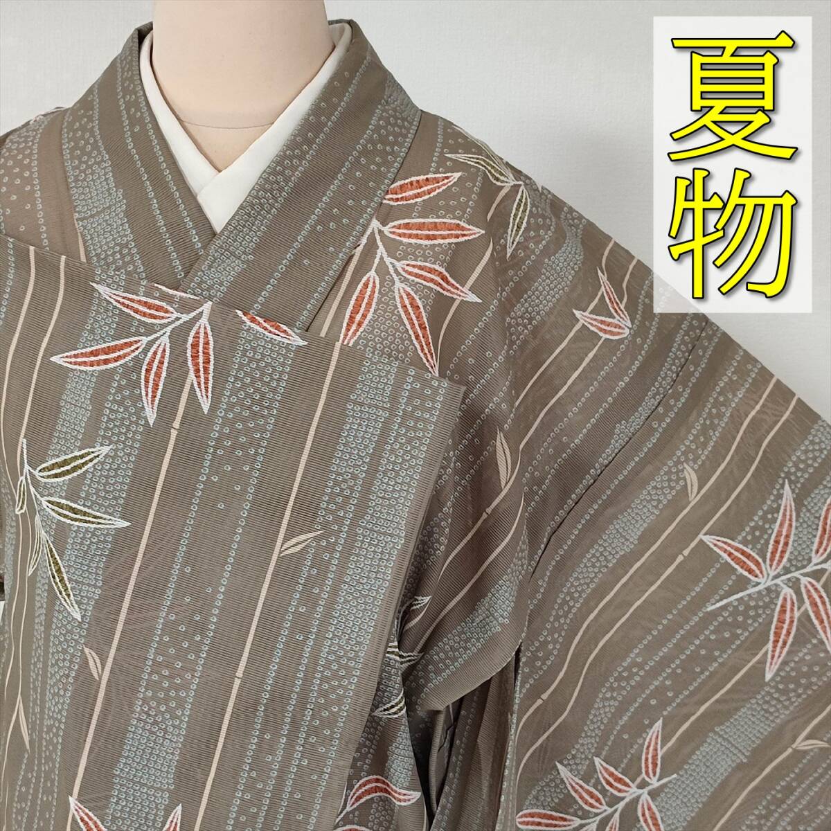 > 即決■着物の越田■裄65身丈162 化繊 小紋 夏物 絽 洗える夏着物 縦柄 竹 笹■ま10E02a