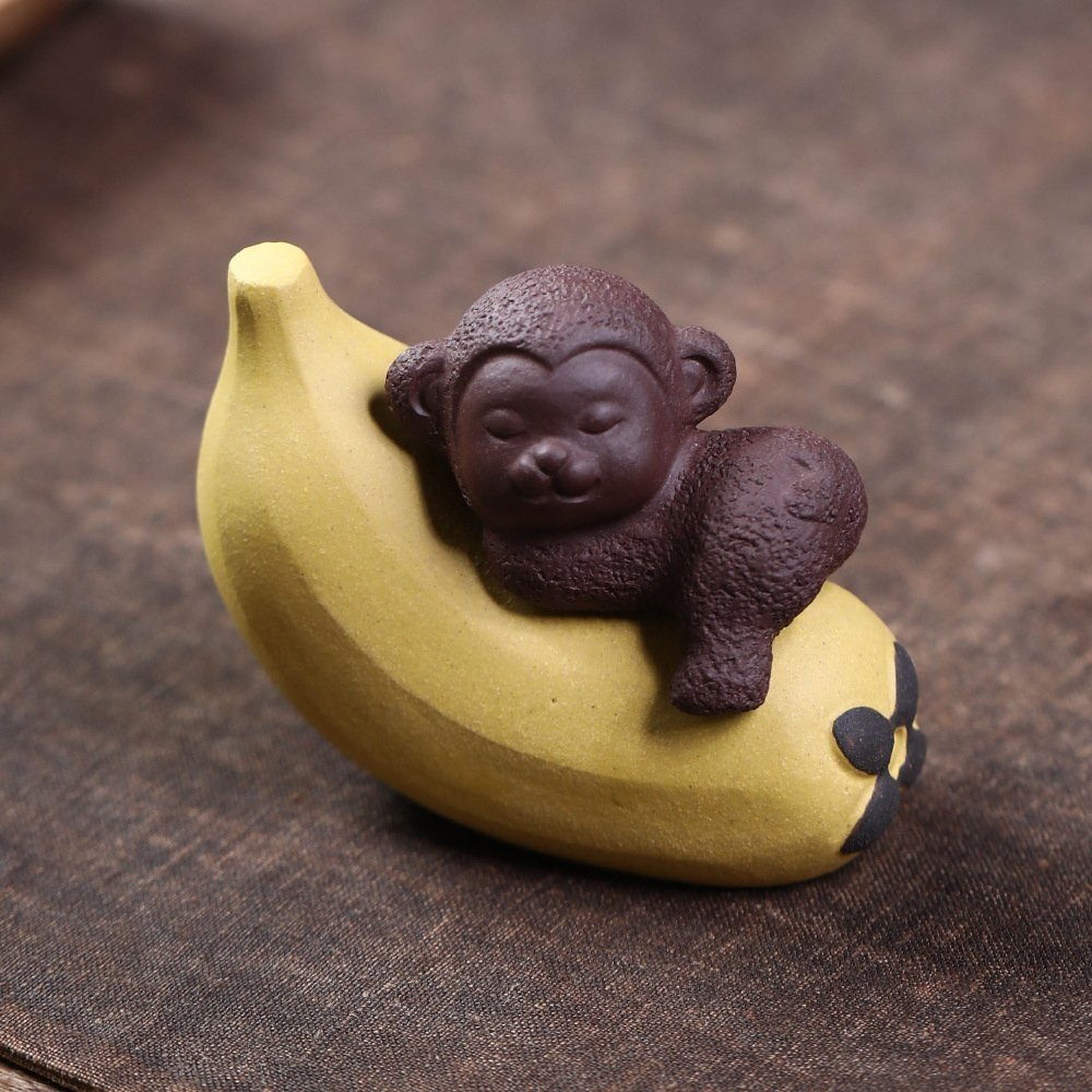 - 紫砂茶寵猿大聖悟道悟空原鉱紫泥茶卓台小置物バナナアクセサリー陶磁器可養