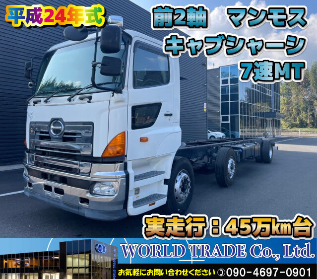 > 【広島発】下取り・ローン受付可! 実走行45万㎞台! 日野 グランドプロフィア 平成24年式 前2軸 マンモス キャブシャーシ 7速MT
