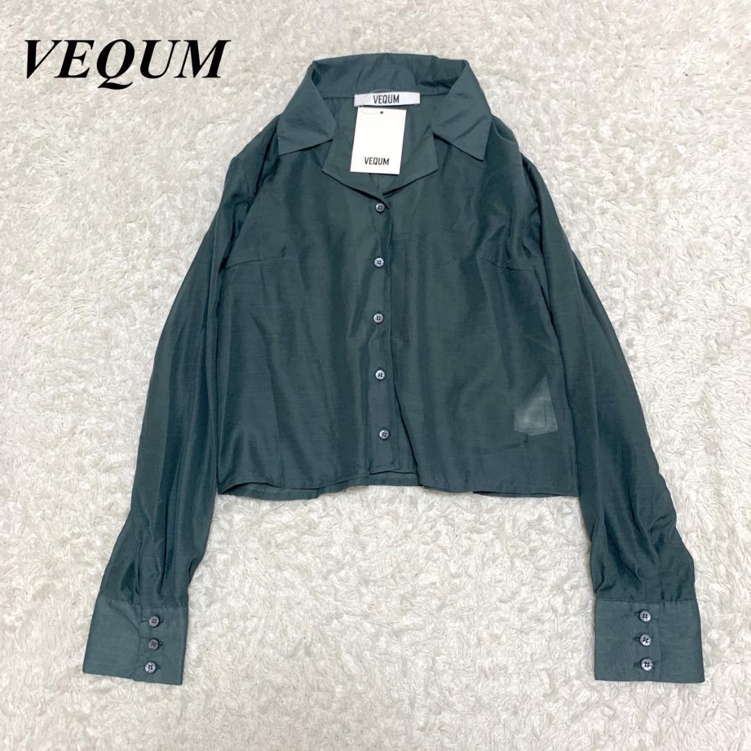 - タグ付き未使用品 VEQUM 長袖シャツ シアー フリーサイズ グリーン □