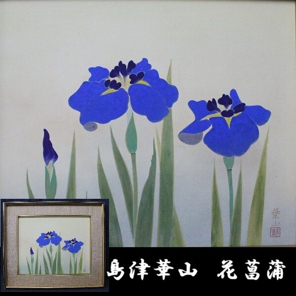 - 島津華山 「花菖蒲」 日本画10号 共シール D951