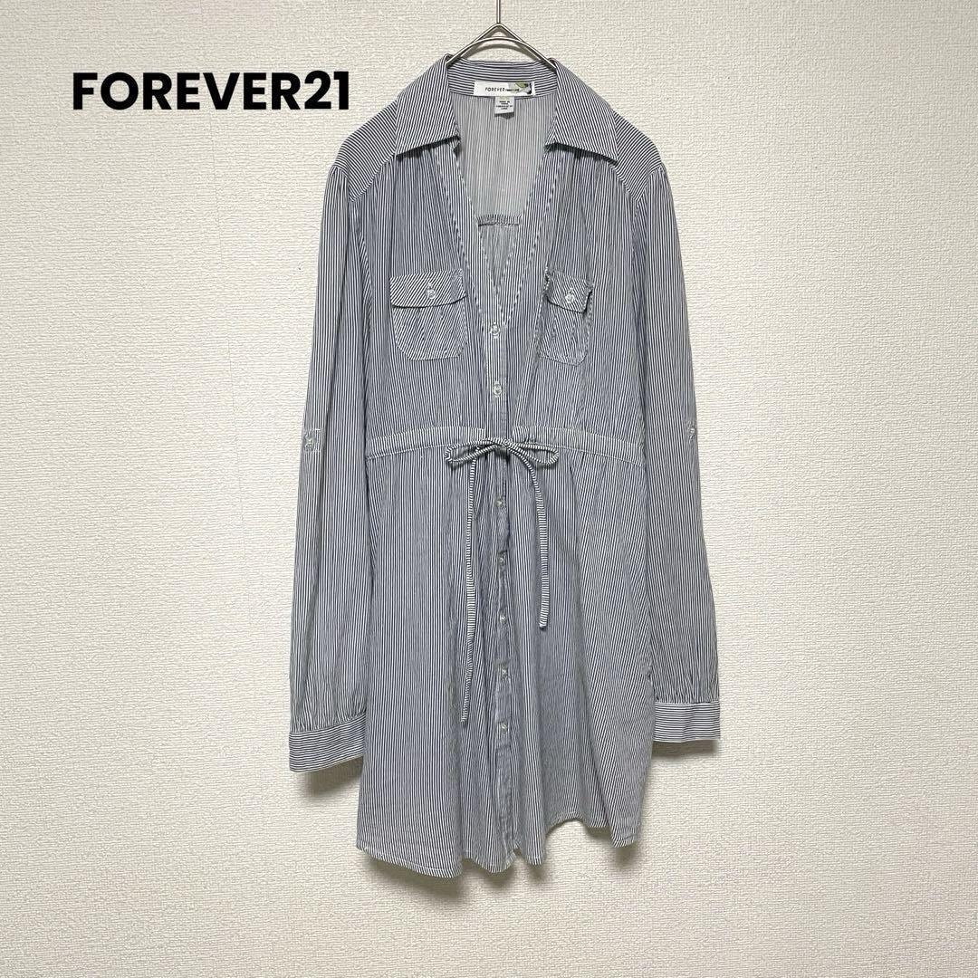 - zo654 FOREVER21/袖2wayコットンチュニック/ストライプ/春夏
