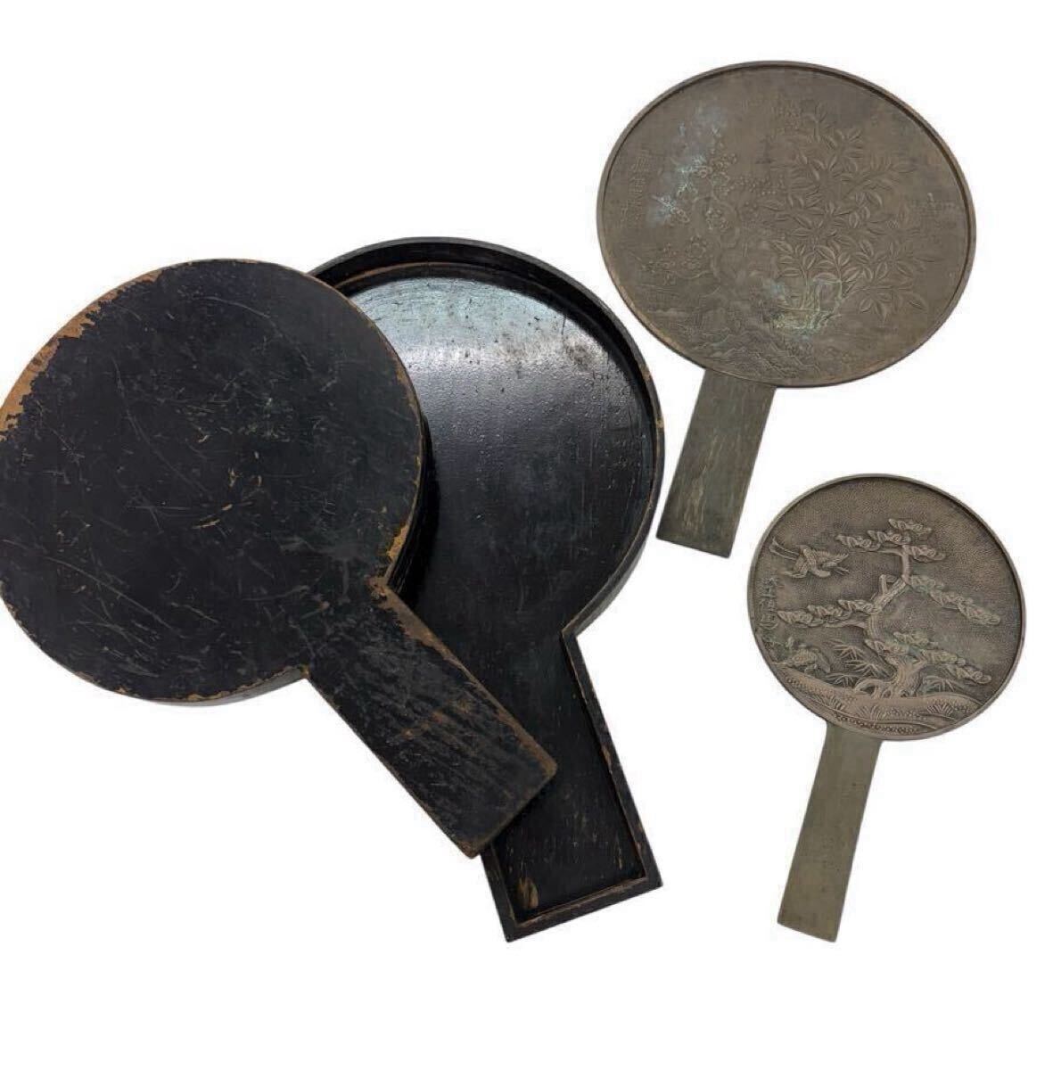 - [2点セット]天下一但馬守 二橋伊豆 古鏡 銅鏡 手鏡 鏡 時代物 アンティーク 250711号