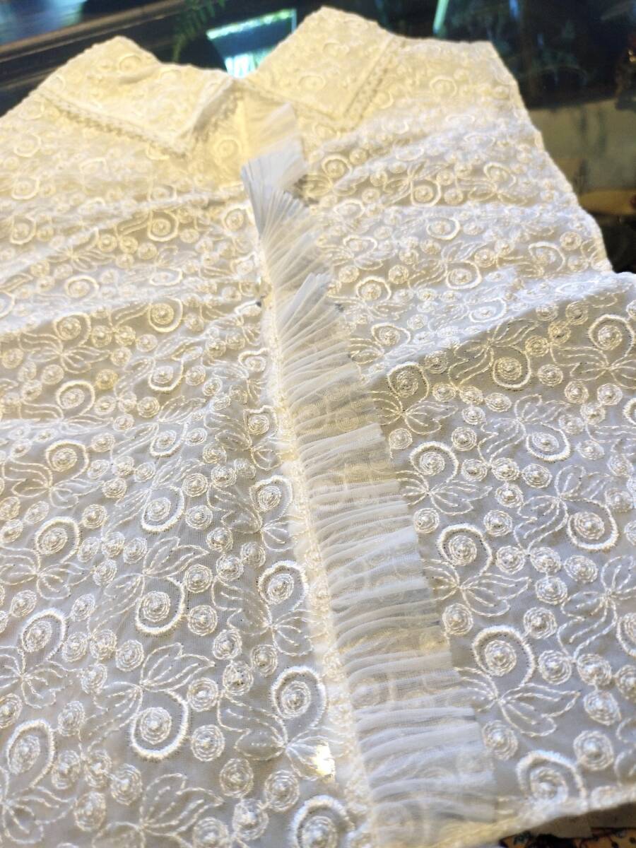 - フランス アンティーク 素敵な模様 お花 葉っぱ 可愛いボタン付き レース つけ襟 ナチュラルプリーツレース!