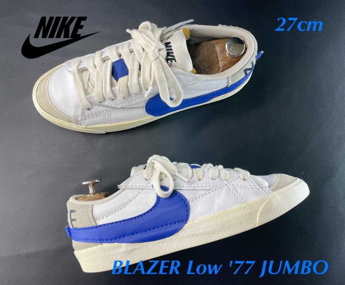- 名機降臨!定13200円!名作ジャンボスウォッシュ!ナイキ【ブレザーLow'77 ジャンボ】レザースニーカー!ホワイト×ブルー×グレー 27cm