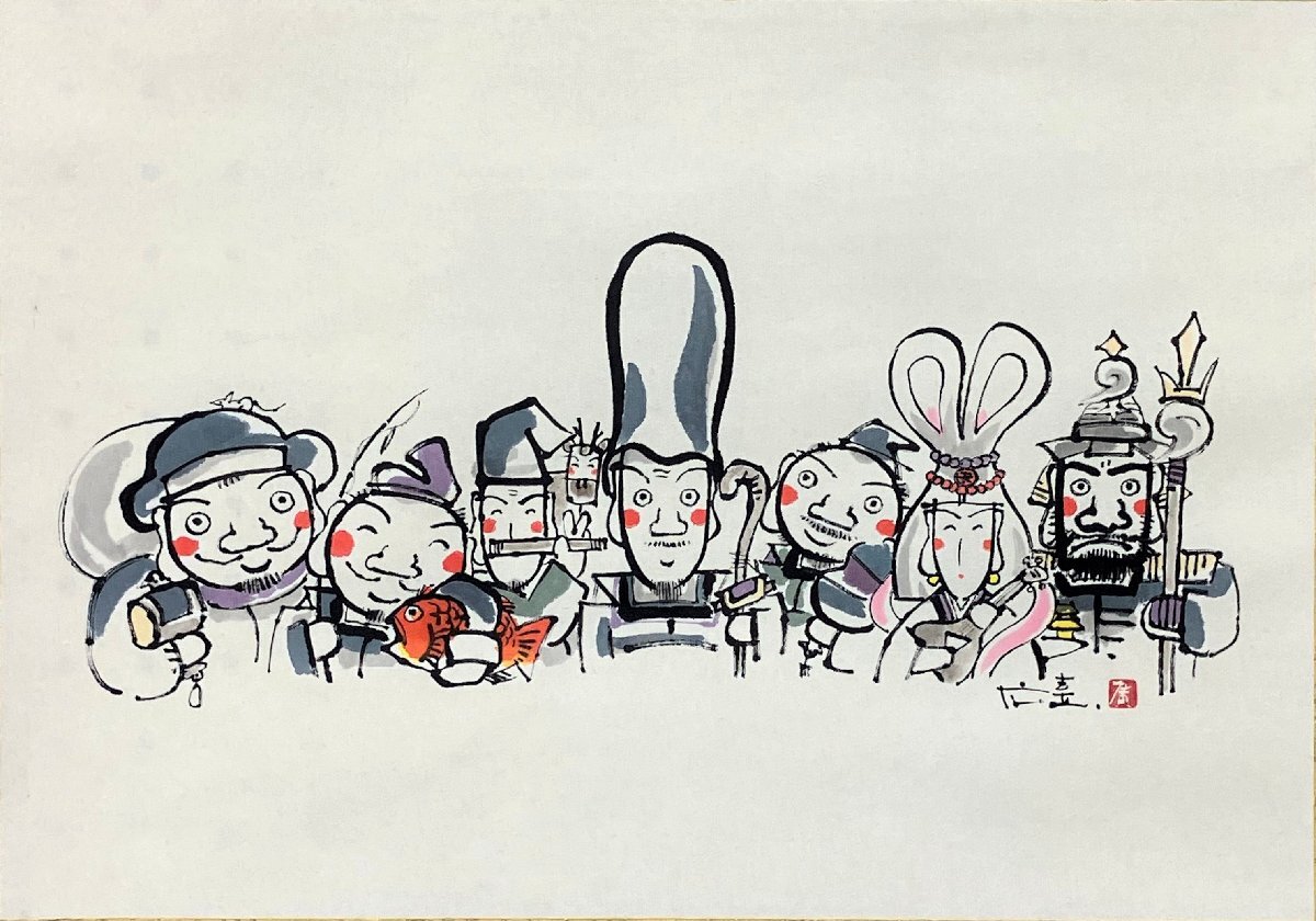 - 【真作】橋本広喜「七福神」墨彩画(掛軸)七福神は福徳の神として信仰される縁起の良い神様です【価格相談可・信頼と実績の正光画廊】G
